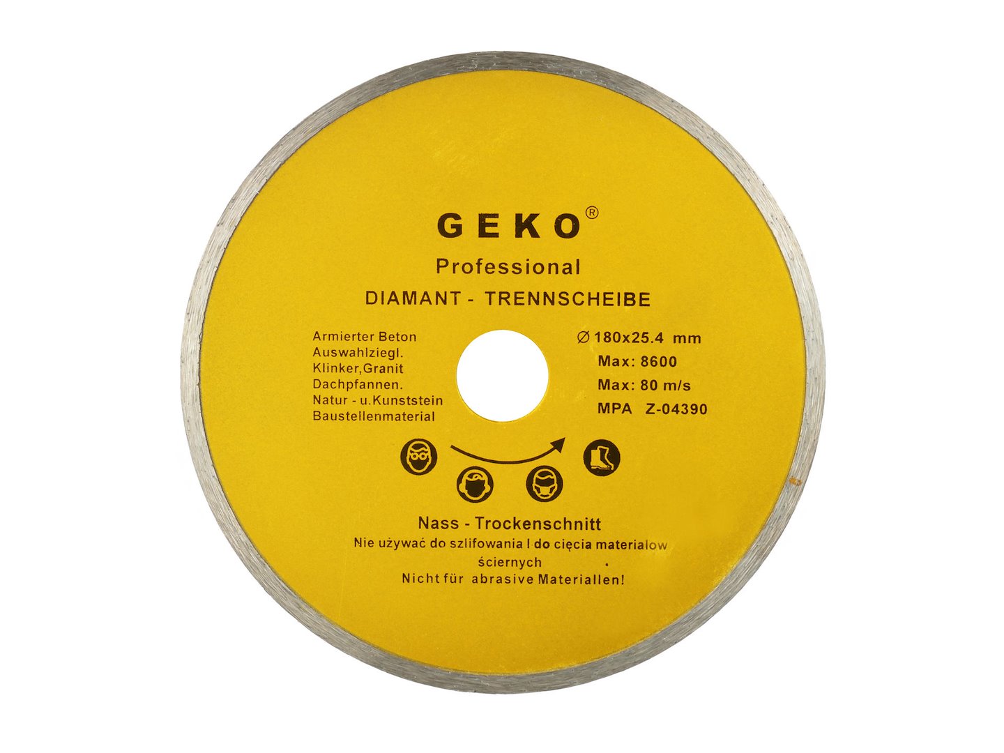 Professionel diamantklinge med kontinuerlig profil designet til skæring af beton, granit, armeret beton, marmor og andre hårde byggematerialer.